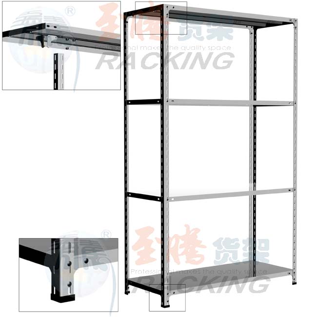 角钢货架,轻巧、多功能、多用途的轻型组合货架几乎适用于任何手工作业的储存方式,有单层和多层可供选择。组合式的设计便于安装,给仓储设计提供了无线的创造空间,专为此系列特设的附件更能不断增加仓储功能及容量。这对于汽车零配件仓库、汽车工业、制药工业及电子工业等的物流管理是一个理想的解决方案。