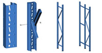 中B型货架柱片的组成(右为三立柱) 中B型货架层板与横梁