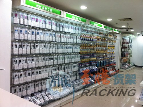 双面货架,全部采用高档的一体成型式超市货架为原型进行专业改制,将传统的背板式货架与背孔式货架完美融合。